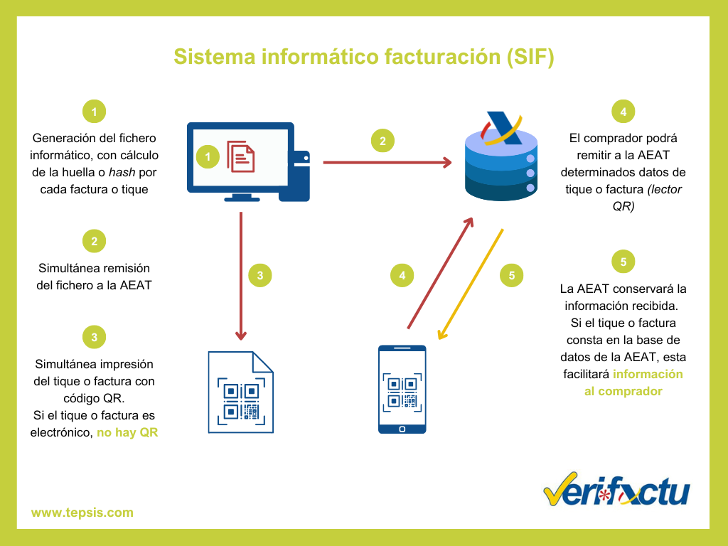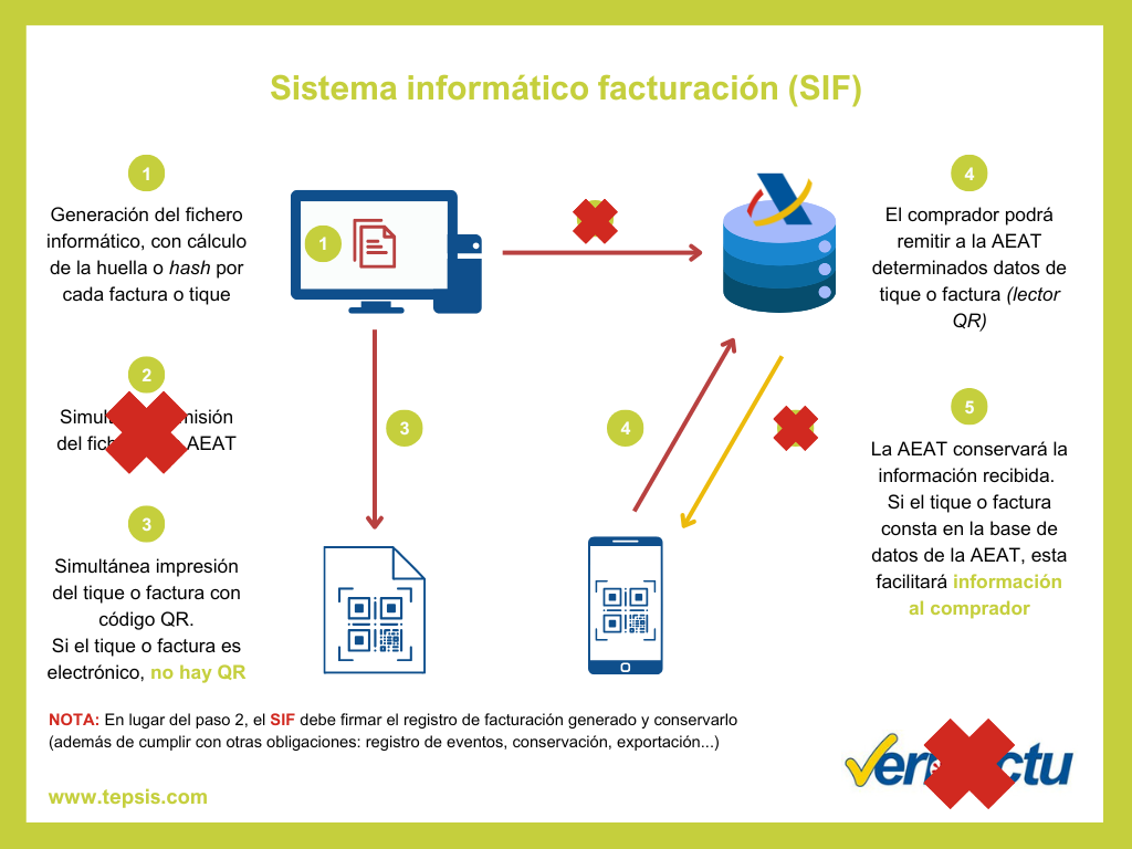 Si el obligado está acogido al VERIFACTU el cliente podrá verificar mediante este código la validez de la factura en la AEAT y si no está acogido deberá imprimir el código igualmente, pero informando de que no es verificable por Hacienda. Si no enviamos los datos a los servidores de la Agencia Tributaria esta no podrá validar nuestra factura.