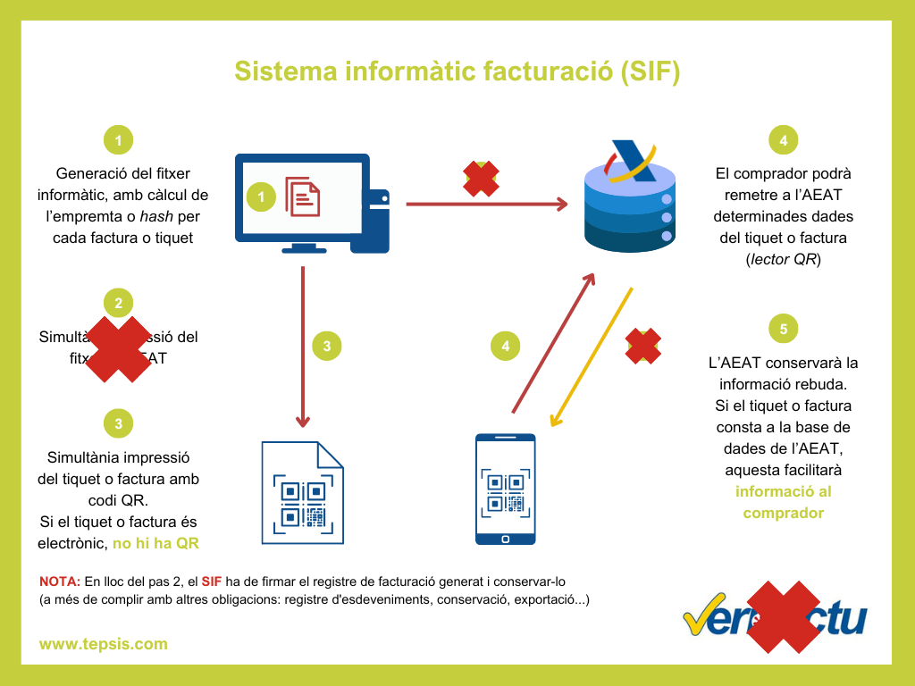 Si l’obligat està acollit al VERIFACTU el client podrà verificar mitjançant aquest codi la validesa de la factura a l’AEAT i si no està acollit haurà d’imprimir el codi igualment, però informant que no és verificable per Hisenda. Si no enviem les dades als servidors de l’Agència Tributària aquesta no podrà validar la nostra factura.